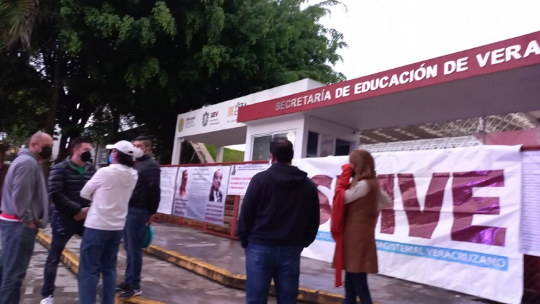 Sindicato magisterial mantiene protesta en la Secretaría de Educación de Veracruz (SEV) y advierte posibles desalojos.