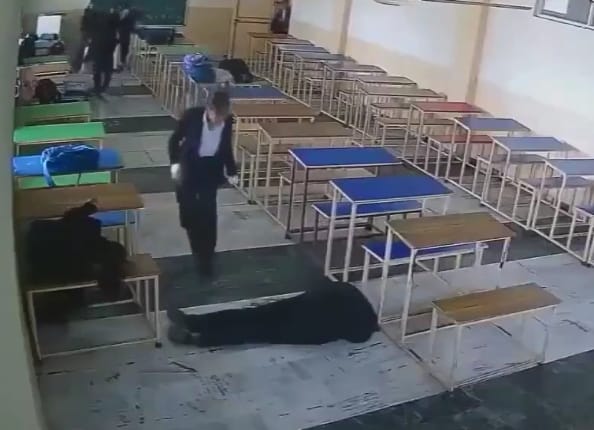 En cámaras de seguridad se logró captar el momento exacto en el que el joven se dirige hacia la chica quien platicaba con una compañera y sin pensarlo saco un arma de su mochila disparando en su contra.
