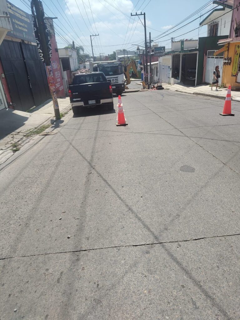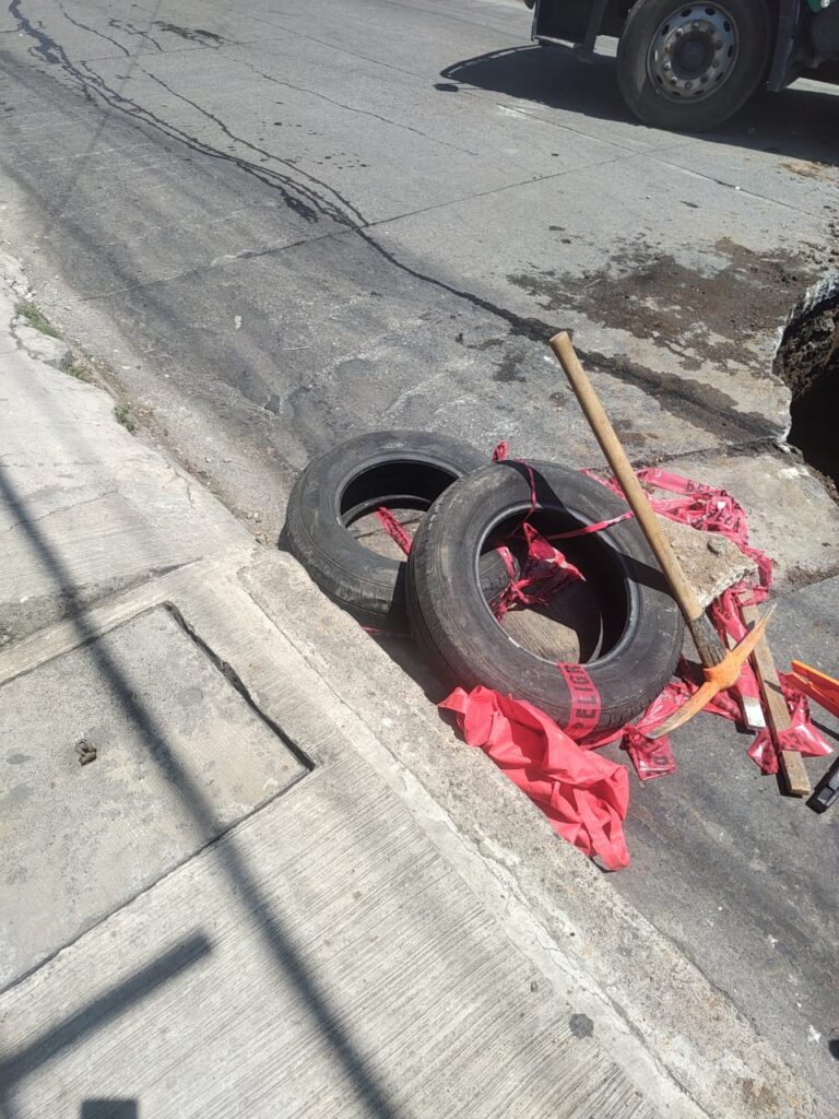 Hoy en viernes Santo… Reparando trabajadores de CMAS el hoyo-cráter