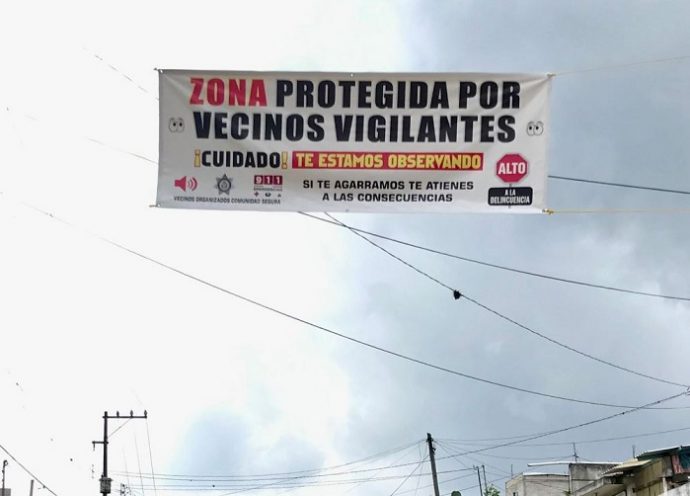 Cansados de los robos, vecinos de la calle Betancourt, en Xalapa, colocaron lonas con mensajes que advierten vigilancia y posibles consecuencias para delincuentes.