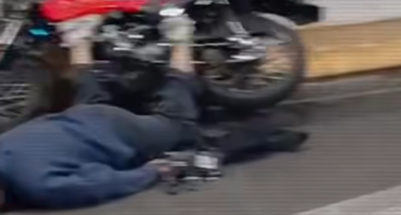 La madrugada de este lunes alrededor de la 1:30 a.m. un motociclista y su acompañante los cuales viajaban a exceso de velocidad derraparon a consecuencia del piso mojado lo que provoco que chocaran contra la pared del viaducto del parque Juárez y terminaran en el piso.