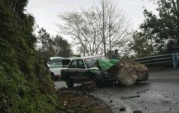 ROCA APLASTA A TAXI EN LA MISANTLA-XALAPA