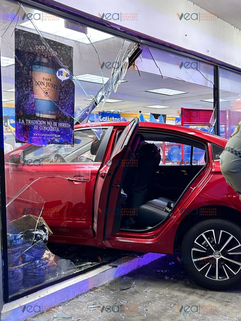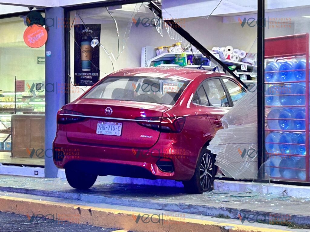El vehículo cruzó el cristal del negocio, provocando destrozos en anaqueles y parte de la fachada. De acuerdo con reportes, el conductor habría confundido los pedales al estacionarse.