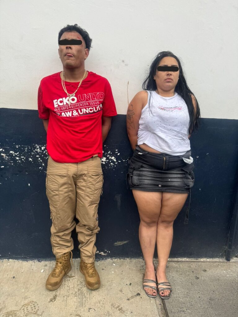 Durante la inspección de la unidad, los elementos aseguraron una réplica de arma de fuego corta y procedieron a la detención de un hombre y una mujer, señalados como presuntos responsables.