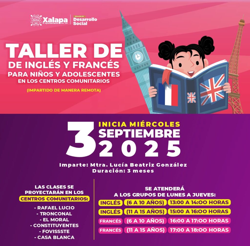 La dirección de Desarrollo Social trae para ti los talleres de inglés y francés para niños y adolescentes en los