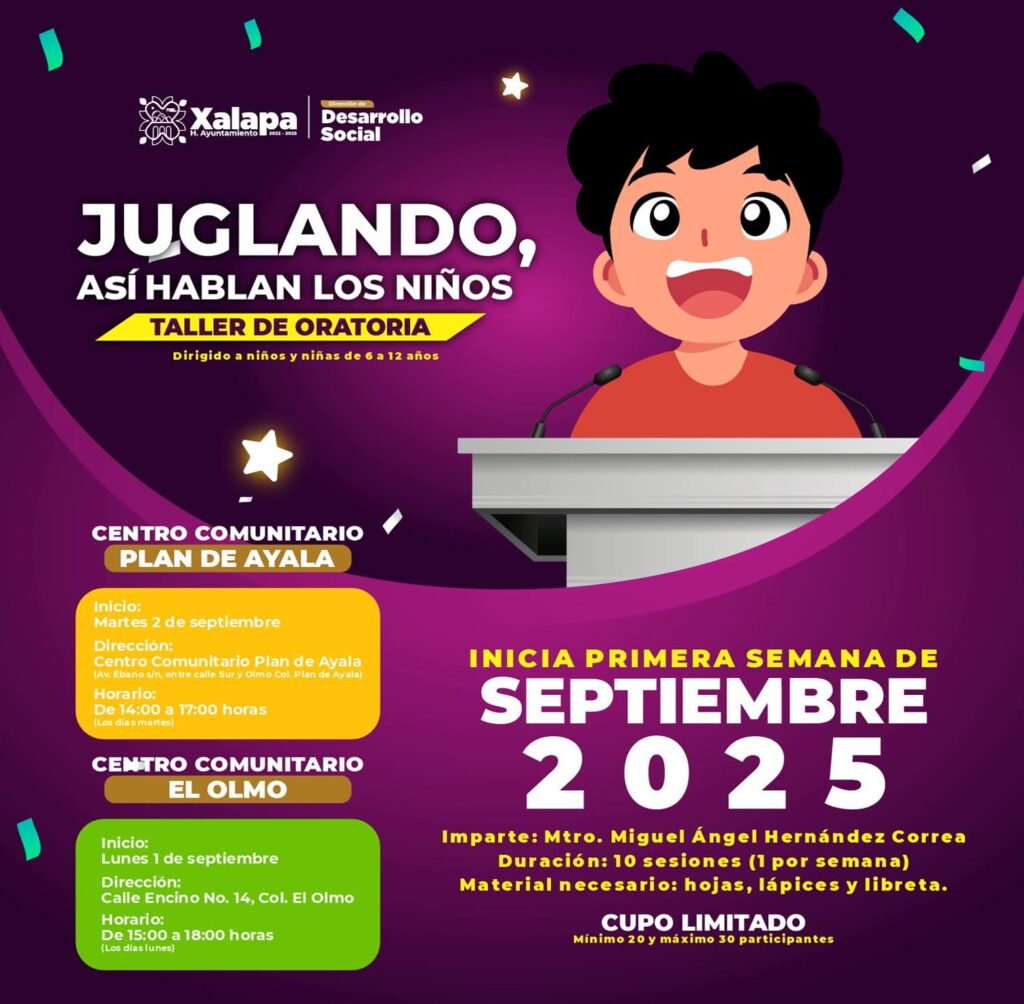 La Dirección de Desarrollo Social invita a niñas y niños a participar en el “Taller de Oratoria”, el cual se