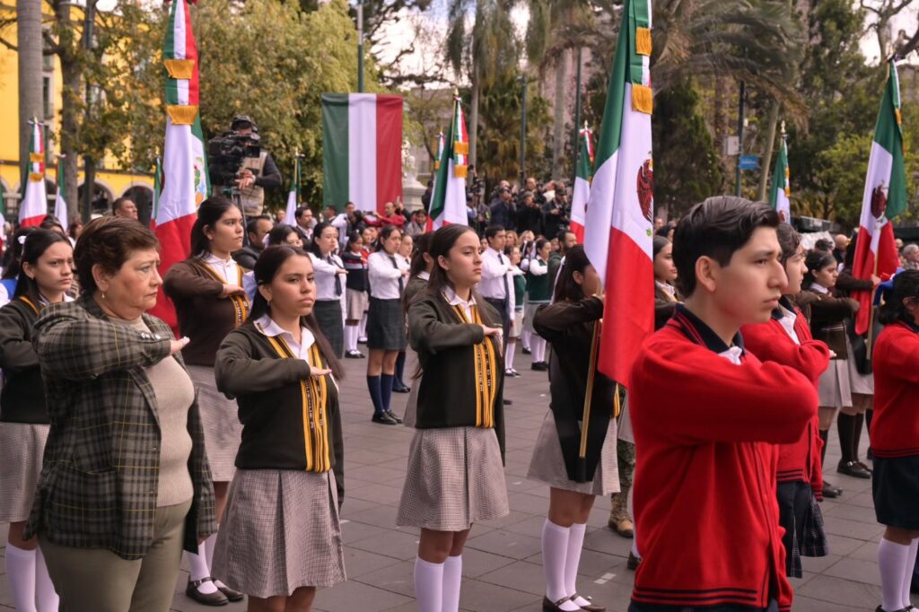 Alumnos que fueron llevados de manera obligatoria a un homenaje a la bandera… Lo extraño que los funcionarios NO LES