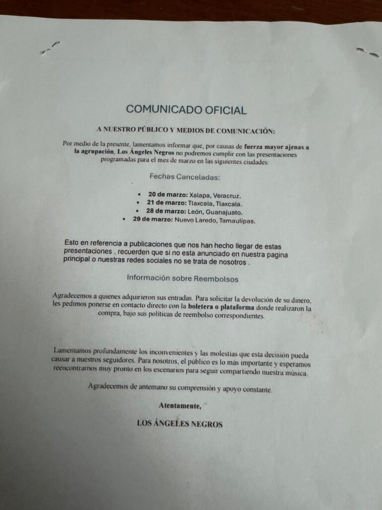 CANCELARON EL EVENTO: DE LOS ÁNGELES NEGROS…