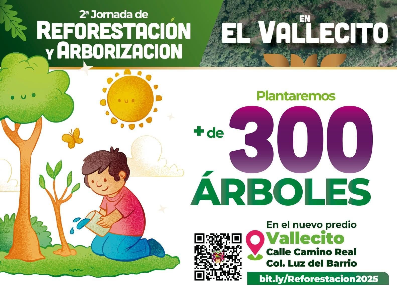 El H. Ayuntamiento de Xalapa invita a la reforestación en “El Vallecito”, acompaña a esta actividad en donde se plantarán más 300 árboles en este predio ubicado en la calle Camino Real, colonia Luz del Barrio.